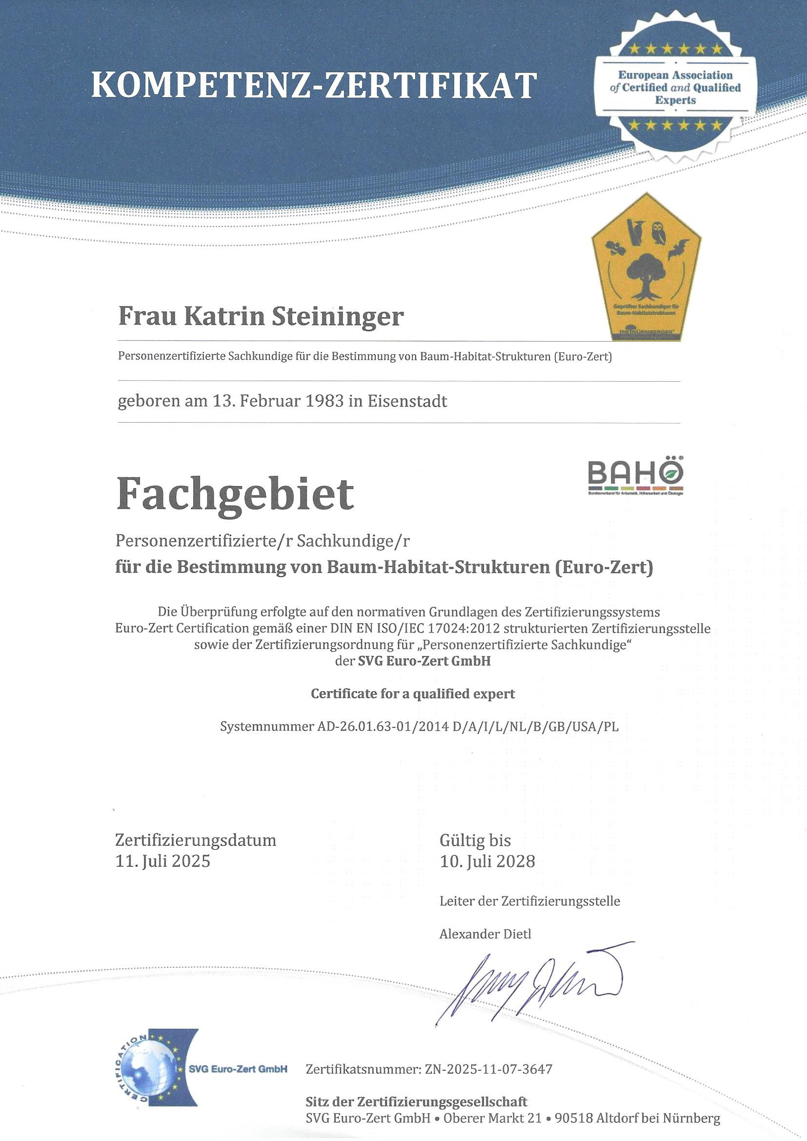 Zertifizierter Sachkundiger für Baum-Habitatstruktur
